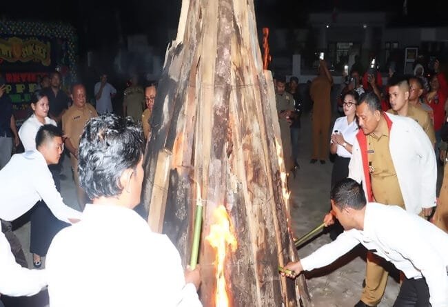 DAIRI – Usai penyerahan 346 Surat Keputusan (SK) Pegawai Pemerintah dengan Perjanjian Kerja (PPPK) tahap II formasi tahun 2024, Bupati Dairi, Vickner Sinaga, memimpin malam keakraban yang ditandai dengan penyalaan api unggun di Lapangan Kantor Kecamatan Sumbul, Selasa (14/10/2025).