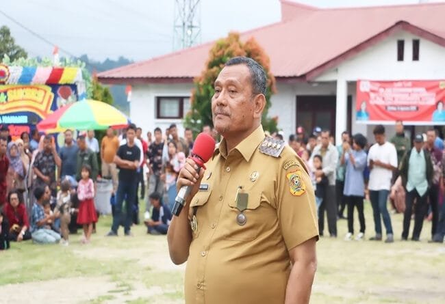 DAIRI – Bupati Dairi, Vickner Sinaga, menyerahkan 346 Surat Keputusan (SK) Pegawai Pemerintah dengan Perjanjian Kerja (PPPK) tahap II formasi tahun 2024 di lapangan Kantor Kecamatan Sumbul, Selasa (14/10/2025). Penyerahan SK turut disaksikan oleh Ketua Tim Penggerak PKK Dairi, Rita Puspita Vickner Sinaga, serta Sekretaris Daerah, Surung Charles Bantjin.