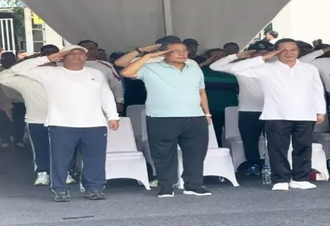 DAIRI – Bupati dan Wakil Bupati Dairi Terpilih, Vickner Sinaga dan Wahyu Daniel Sagala bersama 480 kepala daerah terpilih lainnya mengikuti latihan baris berbaris pada acara pengarahan Kementerian Dalam Negeri (Kemendagri) di Monas, Jakarta Pusat Selasa (18/2/2025).