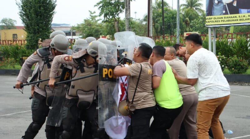 Jaga Kamtibmas Kondusif, Polres Pelabuhan Belawan Latihan Pengendalian Massa