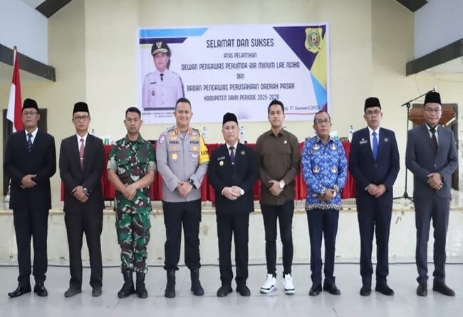 Penjabat Bupati Dairi Surung Charles Lamhot Bantjin mengambil sumpah dan melantik Bawas dan Dewas terpilih yang turut disaksikan unsur Forkopimda yaitu Kapolres Dairi AKBP Faisal Andri Pratomo, mewakili Dandim 0206 Dairi Letnan Inf. Hernandes, mewakili Kajari, Pj Sekda Jonny Hutasoit, Asisten Perekonomian Suasta Ginting, Staff ahli Dapot H Tamba, dan pimpinan OPD serta tamu undangan lainnya.