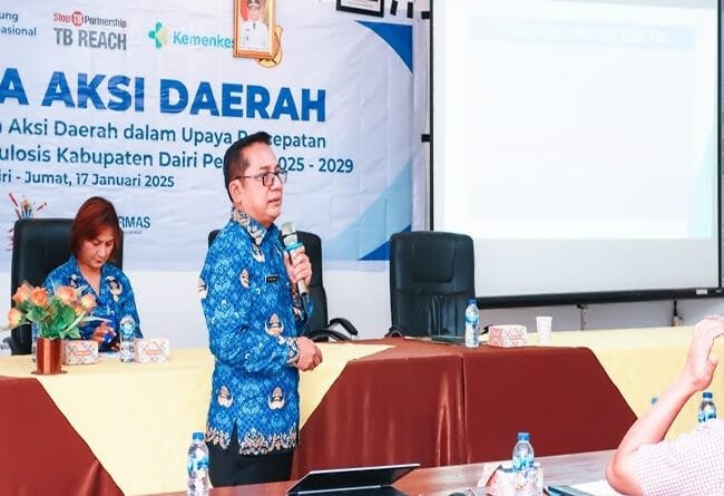 “Seiring dengan strategi nasional dan arah pencapaian eliminasi TBC Tahun 2030, maka Pemerintah Kabupaten berkomitmen untuk mewujudkan Kabupaten Dairi menuju Eliminasi TBC Tahun 2030 dengan membentuk Tim Percepatan Penanggulangan Tuberculosis, dimana tim percepatan ini telah terbentuk melalui surat keputusan Bupati Dairi No.1102/400/9/2024 tentang Penanggulangan Tuberculosis Kabupaten Dairi, dibentuk pada 30 September 2024 yang lalu,” ucapnya.