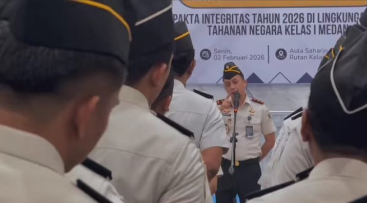 MEDAN – Rumah Tahanan Negara (Rutan) Kelas I Medan melaksanakan apel penandatanganan komitmen bersama pembangunan Zona Integritas menuju Wilayah Bebas dari Korupsi (WBK) serta Pakta Integritas Tahun 2026, yang berlangsung di lapangan Rutan Kelas I Medan,Selasa 3 Februari 2026.