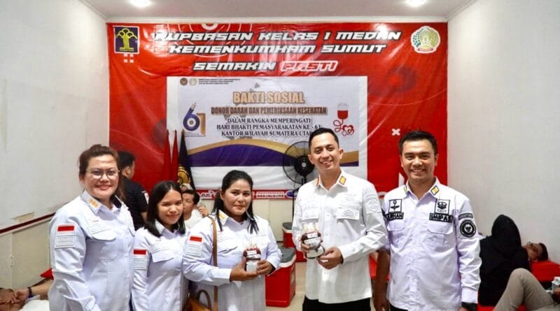 MEDAN – Dalam rangka memperingati Hari Bhakti Pemasyarakatan (HBP) ke-61, Kementerian Imigrasi dan Pemasyarakatan RI, yang mengusung tema “Pasti Bermanfaat Untuk Masyarakat”. Direktorat Jenderal Pemasyarakatan, Kantor Wilayah Sumatera Utara menyelenggarakan kegiatan bakti sosial berupa donor darah dan pemeriksaan kesehatan gratis, Kamis (17/4).