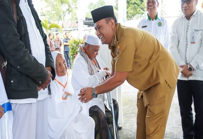 DAIRI – Wakil Bupati Dairi, Wahyu Daniel Sagala, secara resmi memberangkatkan 12 calon jamaah haji eksklusif dalam program Manasik Haji Akbar yang diselenggarakan oleh PT Bank Sumut. Pelepasan dilakukan di halaman Kantor Bank Sumut Cabang Sidikalang, Senin (14/4/2025).